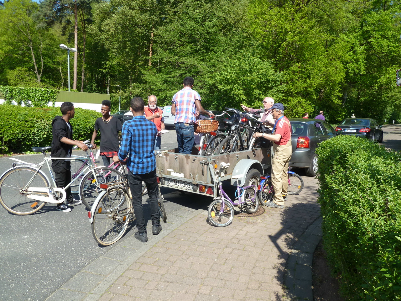 Tatkräftig unterstützt von vier der jugendlichen Schülern, die im „Rainbow-Haus“ untergebracht sind, und dem „Schrauberteam“ wurde am letzten Samstag die Abholung nicht mehr gebrauchter und ggfls. zu reparierender Räder in der Feldbergstraße „vor Ort“ angeboten. Insgesamt konnten 15