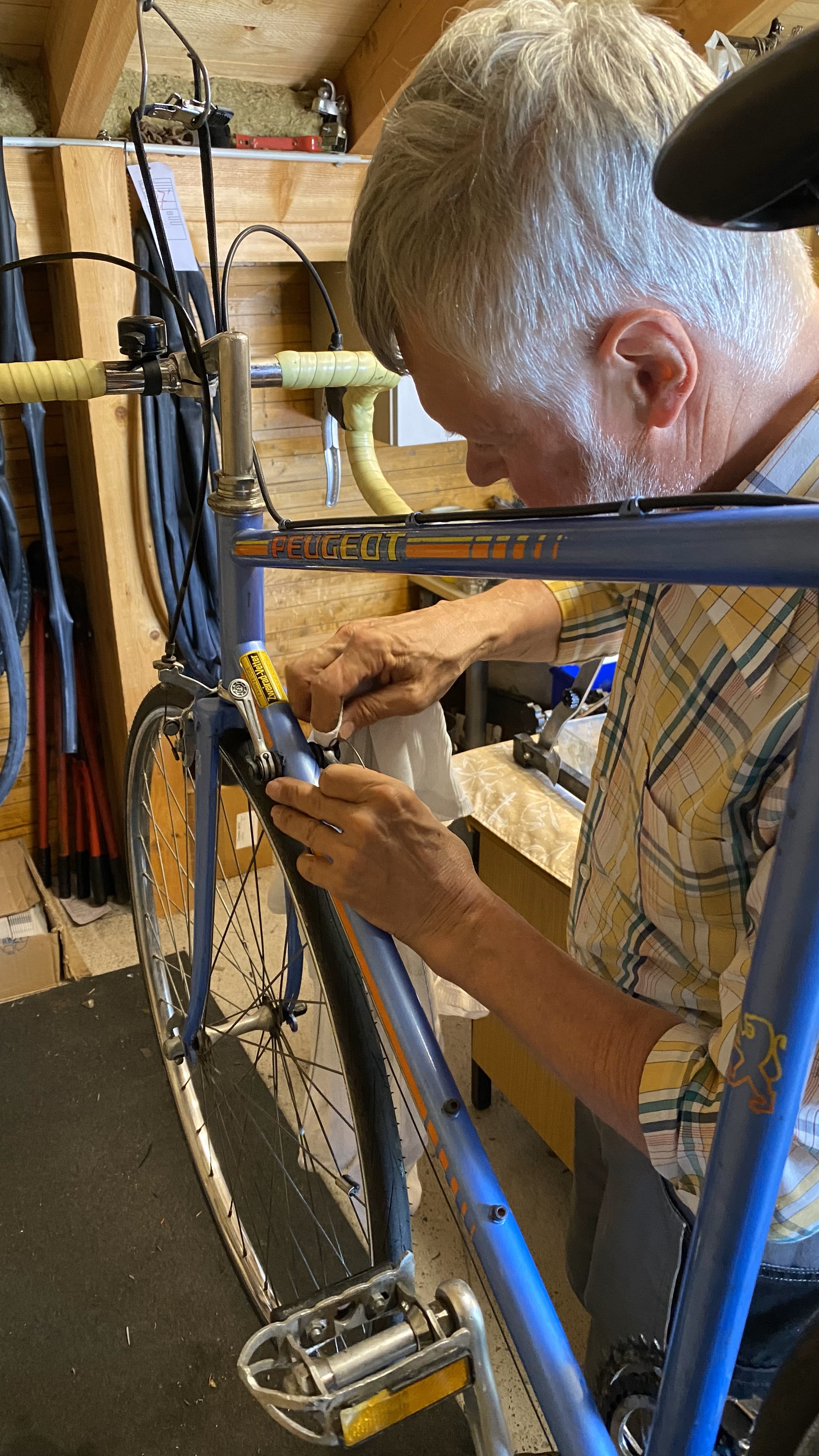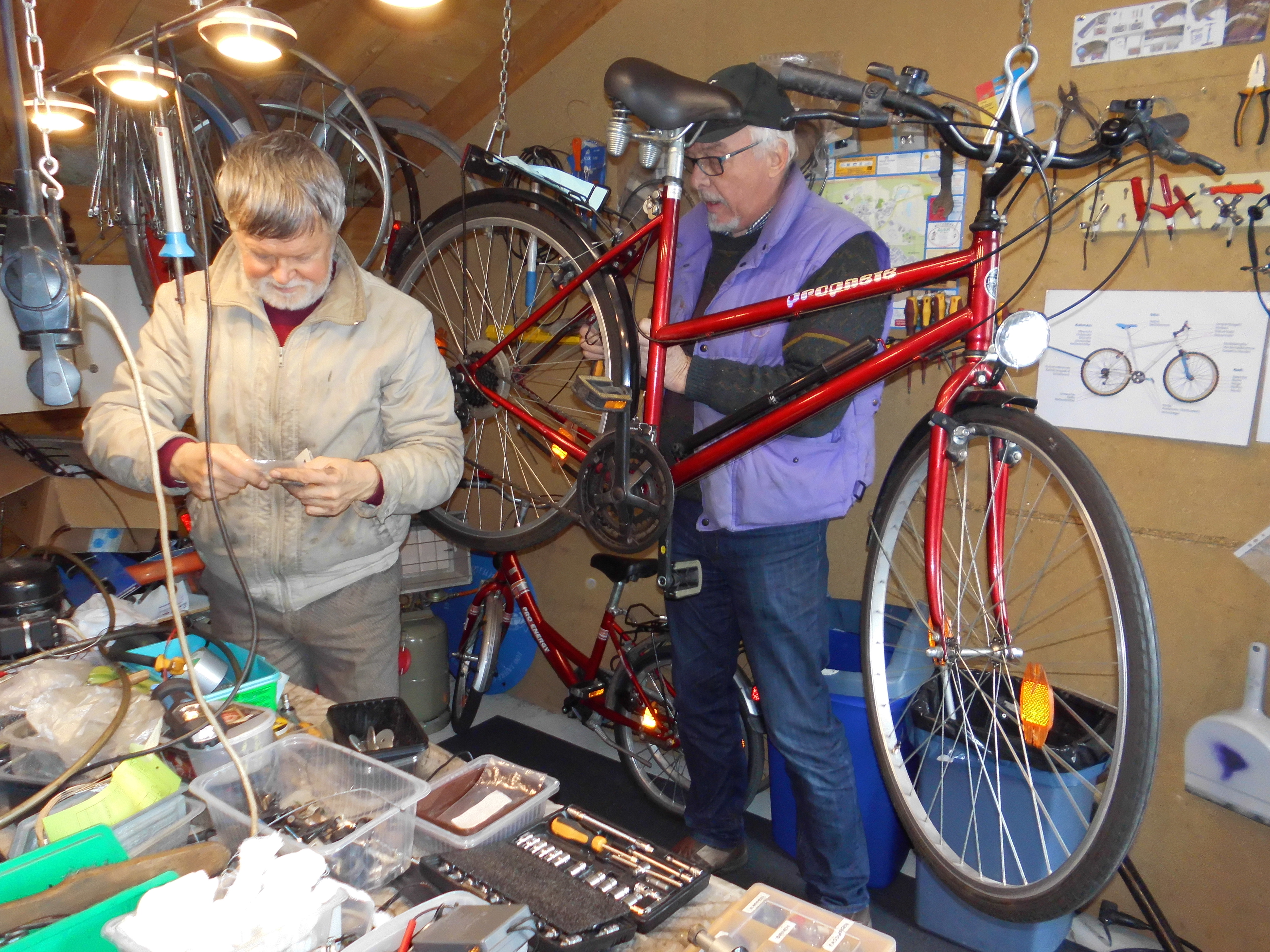 | Bruno Glöckner einer der beiden Gangschaltungsspezialisten, ist nach seiner beruflichen Tätigkeit ehrenamtlich in der Fahrradschrauberwerkstatt tätig, repariert Räder jeder Art und ist selbst in seiner Freizeit allein oder in seinem Fahrradclub mit dem Fahrrad unterwegs. Da er vielseitig und in allen Instandsetzungen und Reparaturen bewandert ist, profitiert das gesamte Schrauberteam der Fahrradwerkstatt von seiner ehrenamtlichen Tätigkeit. | ||||